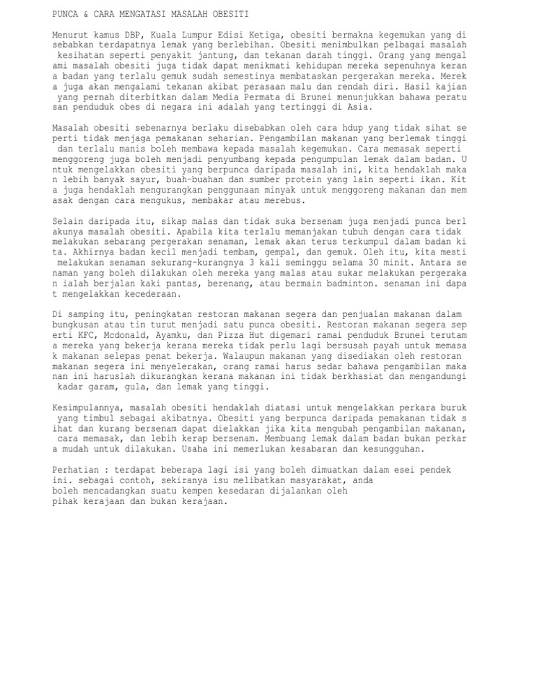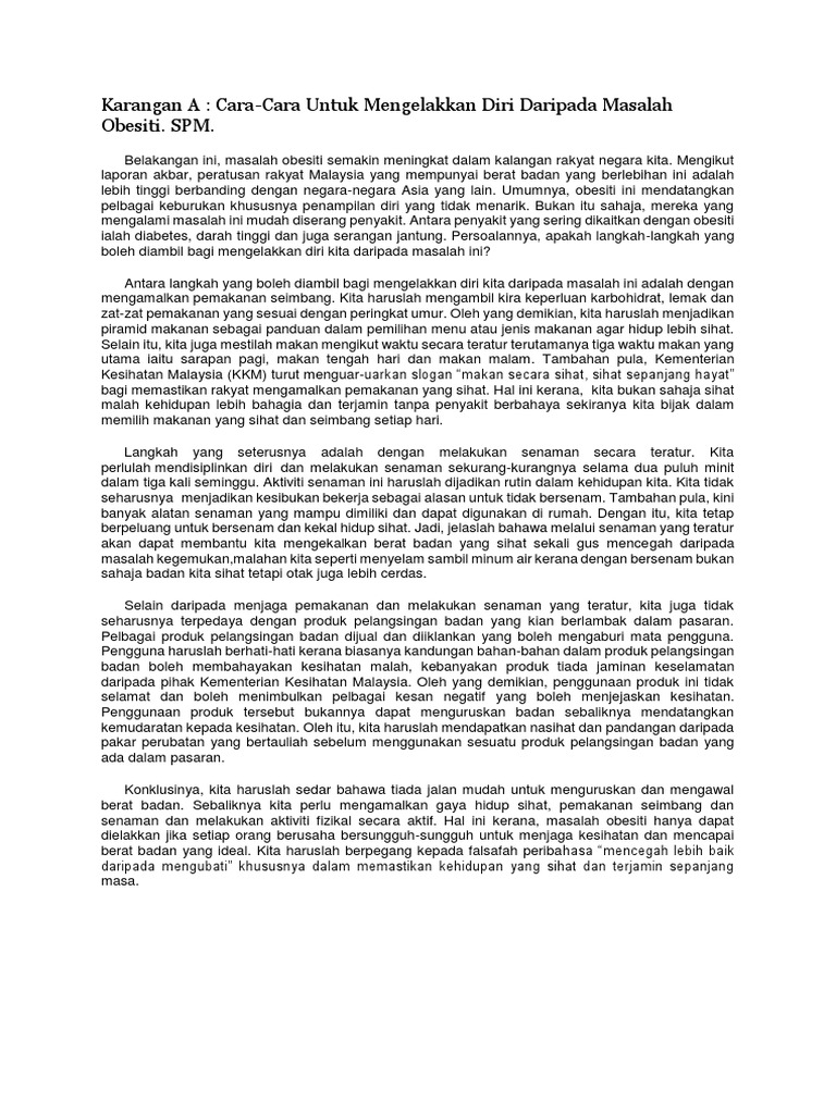 Contoh Karangan Spm Masalah Abesiti By Da_Allisson255 02 Jun, 2022 Post a Comment Karangan Spm Gula Nikmat Atau Bencana Karangan Tentang Obesiti Pdf Karangan Tentang Obesiti Nashcxt Langkah Mencgeah Obesiti Pdf Masalah Obesiti Pdf Share No comments for "Contoh Karangan Spm Masalah Abesiti"
